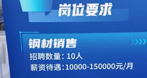 红星资本局9月25日消息,近日,河南一企业招聘“钢材销售”,岗位月薪高达15万元引发关注。据《都市报道》视频,该企业相关负责人称,“该岗位最高月薪可达92万全智股配,当月交税就有30多万,写15万是担心大家不相信。”