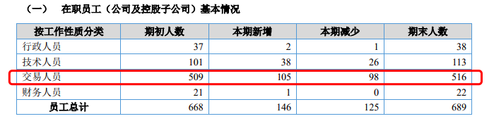 从半年报中可以看到,截至6月30日,中钢网的交易人员有516人,占员工总数比例为74.9%。交易人员流动数量较大,半年内新增105人,减少96人。