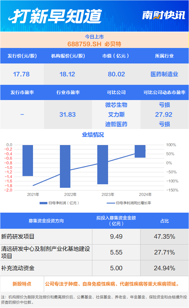 此外,必贝特还提示公司目前尚未产生收入,存在累计未弥补亏损,短期内无法实现盈利和利润分配的风险。公司自成立以来持续进行创新药的研发,尚未实现产品的商业化生产和销售。报告期内,公司净亏损分别为1.88万元、1.73万元和0.56万元。公司报告期内尚未盈利且持续亏损。公司未来几年将存在持续大规模的研发投入,研发费用将持续处于较高水平,且股权激励产生股份支付费用,在可预见的未来经营亏损将增加,上市后未盈利状态预计短期内持续存在且累计未弥补亏损可能继续扩大。