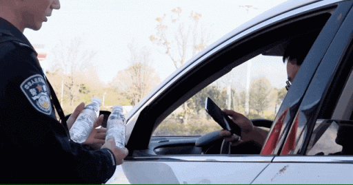 民警向过往旅客发放带有“寻亲标签”的矿泉水。